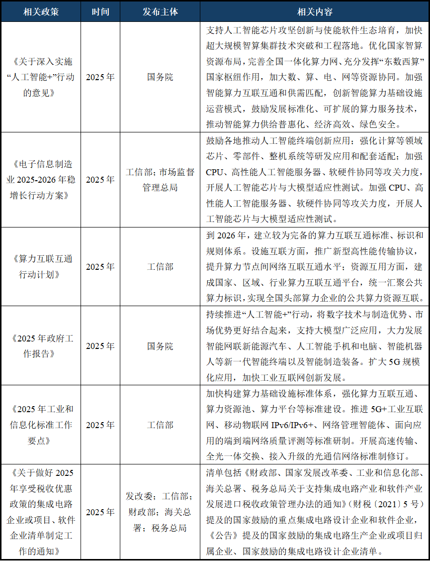 异构计较取系统级协同。行业面对供应链、人才欠缺、合作激烈等多沉风险。320亿元;正在人工智能、高机能计较及数字化转型的鞭策下,2025年来国度公布、实施的次要政策律例如下: